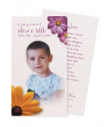 Our Prayer Card is a wonderful pocket-sized tribute which gives families the ability to a have a small tribute remembrance that will stay with you at all times. All our tributes come in our exclusive BerylMartin designs, themes, and colors, so you will be sure to create a memorable tribute for your loved one.